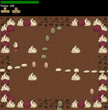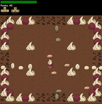 "Sweet Treat" is a top-down arcade shooter game where you play as a silly little bunny wizard who must defend themselves from a hoard of jellies that plague the cake-like arena. Try your hardest to survive and collect points by defeating the enemies using your awesome magic skills by casting fireballs over and over again.
